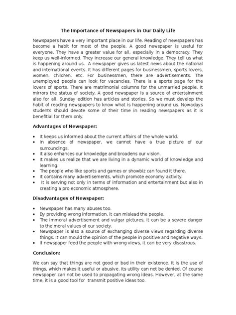 The Importance Of Newspapers