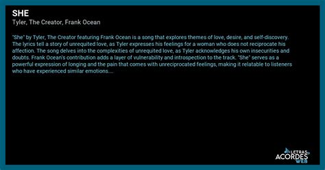 Alright guys, let’s dive deep into the lyrical labyrinth of Tyler, The Creator’s track “She.” This song, featuring the soulful vocals of Frank Ocean, is a prime example of Tyler’s evolving artistry, moving beyond the shock value of his earlier work to explore more nuanced and complex themes. When we talk about the meaning of “She” by Tyler , we’re not just dissecting a rap song; we’re looking at a narrative that grapples with obsession, idealized love, and the often-uncomfortable realities of relationships. Tyler has always been known for his vivid storytelling, and “She” is no exception. He paints a picture of a tumultuous dynamic with a woman he’s completely fixated on. The song’s energy is palpable, fueled by a mix of desire, frustration, and a touch of possessiveness. It’s the kind of track that makes you rewind and listen again, trying to catch every subtle hint and emotional inflection. The production itself, with its swirling synths and infectious beat, mirrors the chaotic yet captivating nature of the subject matter. It’s a masterclass in creating an atmosphere that draws you into Tyler’s headspace, making you feel the intensity of his emotions. This isn’t just about a crush; it’s about a consuming infatuation that blurs the lines between love and something darker, something more demanding. The repetition of certain phrases and the overall flow of the lyrics emphasize this obsessive quality, making it clear that this woman has taken over his thoughts and his world. It’s a raw and unfiltered look at the intoxicating, and sometimes toxic, nature of intense attraction. The meaning of “She” by Tyler is deeply rooted in this exploration of a powerful, almost overwhelming, desire.