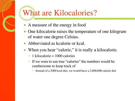 Let’s kick things off with the basics. Kilocalories , often referred to as calories, are units of energy. When we talk about the energy content of food, we’re actually talking about kilocalories. So, what exactly do they measure? Kilocalories measure the amount of energy your body can get from consuming a particular food or drink. This energy powers everything you do, from running a marathon to simply blinking your eyes.