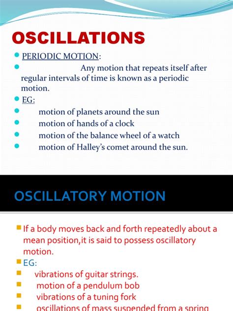 And finally, let’s explore forced oscillations . These are oscillations driven by an external force. This external force provides energy to the system, causing it to oscillate. Think of pushing a swing to keep it moving. The frequency of the driving force can significantly influence the behavior of the forced oscillation. The system will resonate when the driving frequency matches the natural frequency of the oscillating system. Resonance is when the system oscillates with a large amplitude, leading to some interesting effects. Resonance is used in various applications, such as tuning radio receivers and designing musical instruments. Understanding forced oscillations and resonance is crucial in many areas of science and engineering. For example, in electrical circuits, the resonance of a circuit can be used to amplify a particular signal frequency. In mechanical systems, resonance can be used to amplify vibrations or to design structures that are resistant to external forces. Forced oscillations are involved in a wide range of phenomena, from the movement of bridges to the operation of microwave ovens.