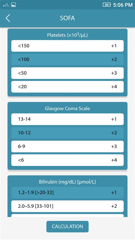 Let’s get practical and walk through how you’d actually calculate the SOFA score . It might seem a bit daunting at first, but once you see it broken down, it makes a lot of sense. Remember, we look at six organ systems and assign a score from 0 to 4 for each. Let’s imagine a patient in the ICU. For the respiratory system , we look at their PaO2/FiO2 ratio. If the patient is on room air (FiO2 = 0.21) and their PaO2 is 90 mmHg, the ratio is 90 0 .21 = 428. This falls into the normal range, so the respiratory SOFA score is 0. If, however, they were on mechanical ventilation with an FiO2 of 0.5 and a PaO2 of 70 mmHg, the ratio would be 70 0 .5 = 140. This would give them a respiratory SOFA score of 2. For the cardiovascular system , we check their Mean Arterial Pressure (MAP) and if they’re on vasopressors. If their MAP is 80 mmHg and they aren’t on any vasopressors, the cardiovascular SOFA score is 0. But, if their MAP dropped to 60 mmHg and they needed a norepinephrine drip at 0.1 mcg/kg/min, this would likely result in a cardiovascular SOFA score of 2 or 3, depending on the specific dosing guidelines used. For the hepatic system , we look at bilirubin. If their bilirubin level is 1.0 mg/dL, that’s a score of 0. If it’s 3.5 mg/dL, that’s a score of 2. For coagulation , if their platelet count is 200,000/µL, the score is 0. If it drops to 70,000/µL, the score becomes 2. For the renal system , if their creatinine is 1.0 mg/dL, the score is 0. If it’s 2.5 mg/dL, that’s a score of 2. Finally, for the central nervous system , we use the Glasgow Coma Scale (GCS). A GCS of 15 (fully alert and oriented) gets a score of 0. If the patient is obtunded with a GCS of 10, that’s a score of 2. So, let’s say our patient has: Respiratory SOFA 2, Cardiovascular SOFA 1 (MAP 70, on low-dose dopamine), Hepatic SOFA 0 (bilirubin 1.2), Coagulation SOFA 1 (platelets 90,000), Renal SOFA 1 (creatinine 1.5), and CNS SOFA 1 (GCS 13). Adding these up: 2 + 1 + 0 + 1 + 1 + 1 = 6. So, this patient has a total SOFA score of 6. This score would then be used to assess their severity and prognosis. Remember, these calculations are often done using specific protocols and updated guidelines, so it’s always best to refer to the most current ones!