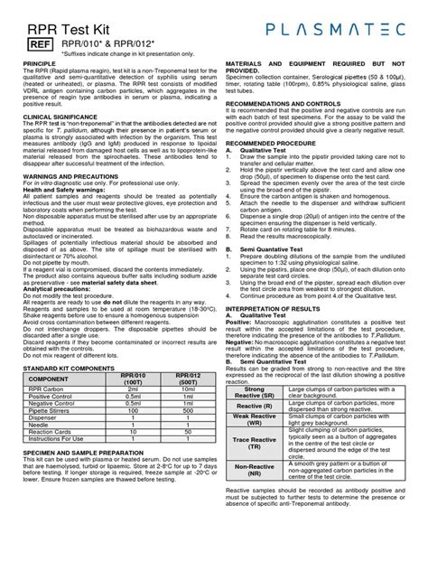 First off, let’s chat about the RPR test itself. RPR stands for Rapid Plasma Reagin. This is a type of blood test that’s primarily used to screen for syphilis. Syphilis is a sexually transmitted infection (STI) that can have some pretty serious health consequences if left untreated. The RPR test looks for antibodies that your body produces in response to the syphilis infection. It’s important to know that this test isn’t specific to syphilis; it can sometimes show positive results in people who don’t have syphilis due to other conditions, which is why doctors often use it as a screening tool and then follow up with more specific tests if needed. Think of it like an initial alarm bell that lets your doctor know something might be up.