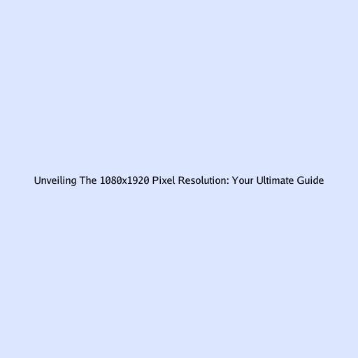 Unveiling the 1080x1920 Pixel Resolution: Your Ultimate Guide