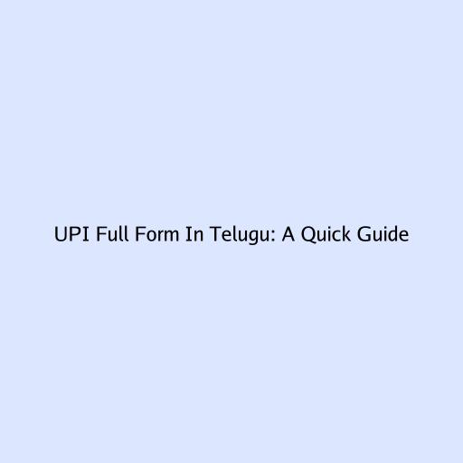 - UPI Full Form in Telugu: Practical Applications and Benefits
