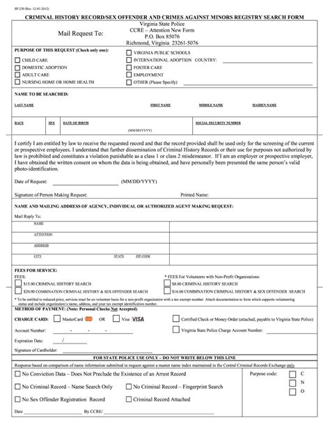Volunteer positions , especially those involving children or the elderly, can also necessitate an SP-230 check. Many non-profit organizations and community groups want to ensure their volunteers are trustworthy. Even certain types of private employment might require it, particularly in industries like security or finance, where trustworthiness is paramount. Essentially, anytime a state agency or a regulated entity needs to confirm an individual’s background for reasons of public safety, trust, or regulatory compliance, the SP-230 is likely to be the form they use. It’s the official mechanism for tapping into the Virginia State Police’s criminal history records to make informed decisions. So, while you might not always fill it out yourself, understanding why it’s being requested and what it entails is super helpful for navigating these processes smoothly. It’s all about making sure the right people are in the right positions, safeguarding everyone in the Commonwealth.