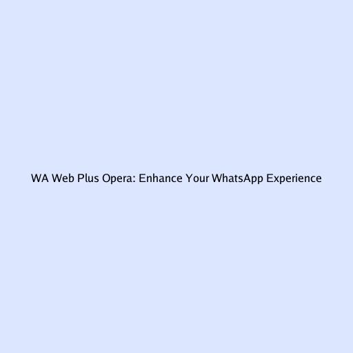 WA Web Plus Opera: Enhance Your WhatsApp Experience