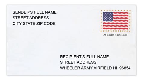 1. Incorrect Zip Code: One of the most common mistakes is using the wrong zip code. Always verify that you are using 96854 for Wheeler Army Airfield . Using a similar-sounding zip code or one associated with a nearby civilian area can cause significant delays or misrouting of your mail.